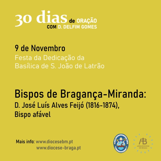 Quarta feira, 9 de novembro - Bispos de Bragança‐Miranda: D. José Luís Alves Feijó (1816‐1874), Bispo afável / Festa da Dedicação da Basílica de Latrão
