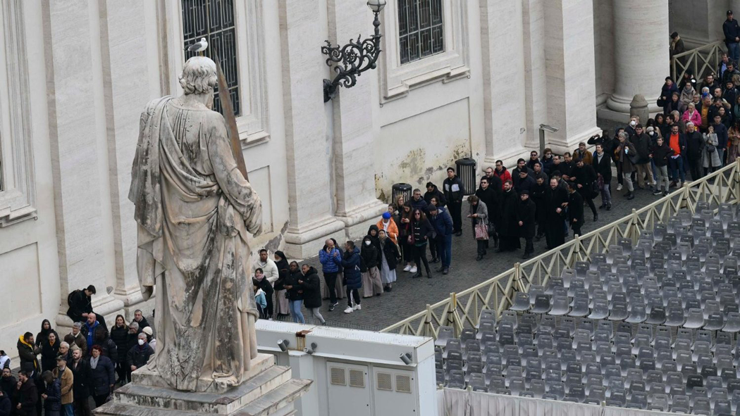 Muitos voltaram à Praça de São Pedro esta manhã, esperando em fila dupla desde as primeiras horas da manhã. As primeiras estimativas falam de 40.000 pessoas que foram prestar as últimas homenagens ao Papa Emérito. O mesmo fluxo é esperado todos os dias até 4 de janeiro à noite. O prefeito de Roma, Bruno Frattasi, já havia antecipado isso no sábado, acrescentando que cerca de 50 a 60 mil pessoas são esperadas para o dia do funeral, presidido pelo Papa Francisco.