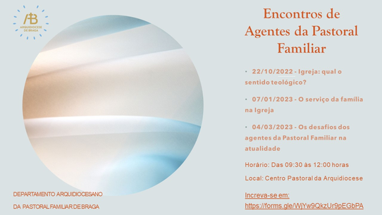 O Departamento Arquidiocesano Pastoral Familiar dinamiza, no dia 7 de janeiro, o 2º Encontro Arquidiocesanos para Agentes da Pastoral Familiar.