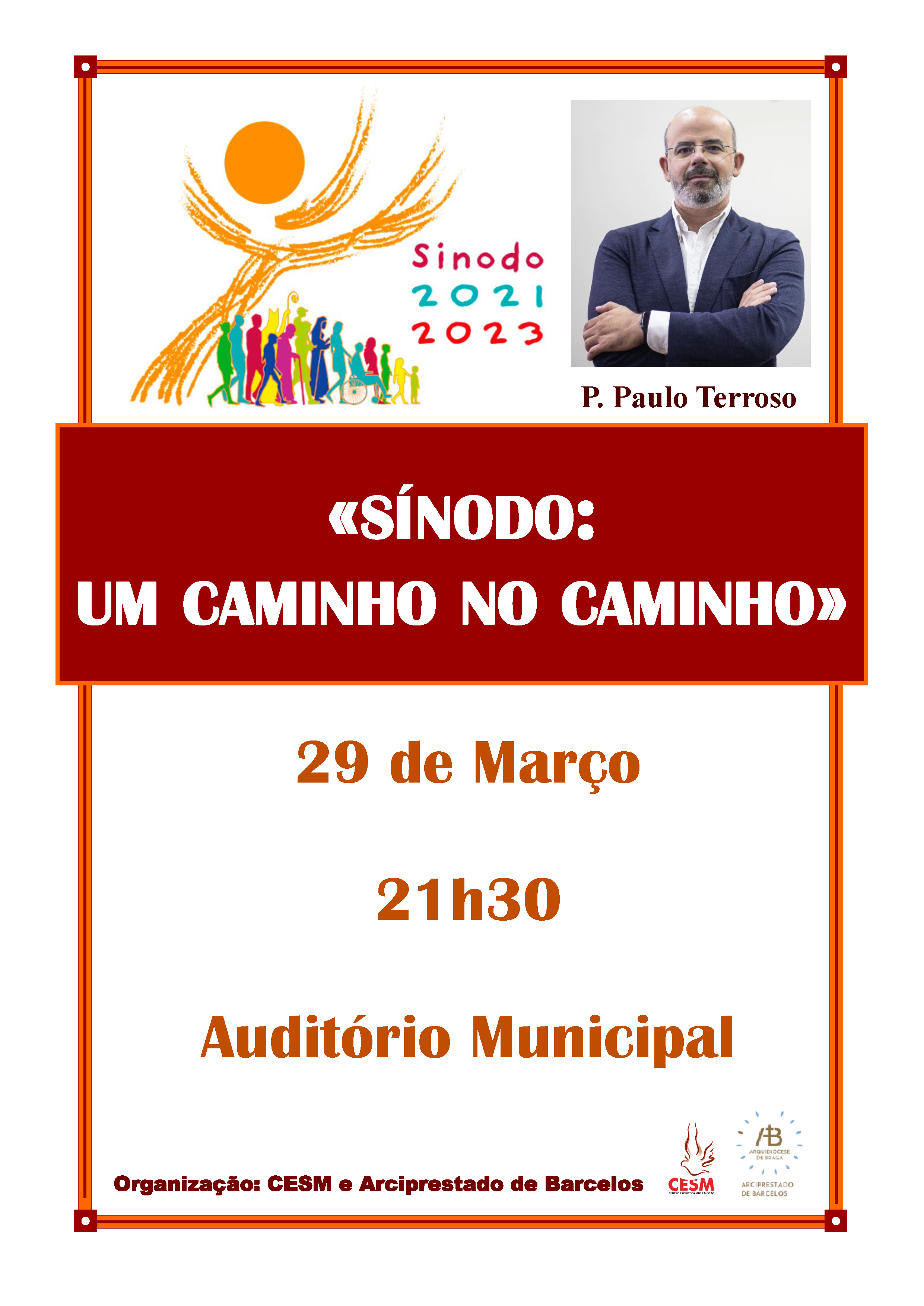 O Padre Paulo Terroso profere, às 21h30 do próximo dia 29, no auditório municipal de Barcelos, uma conferência intitulada “Sínodo: um caminho no caminho”.