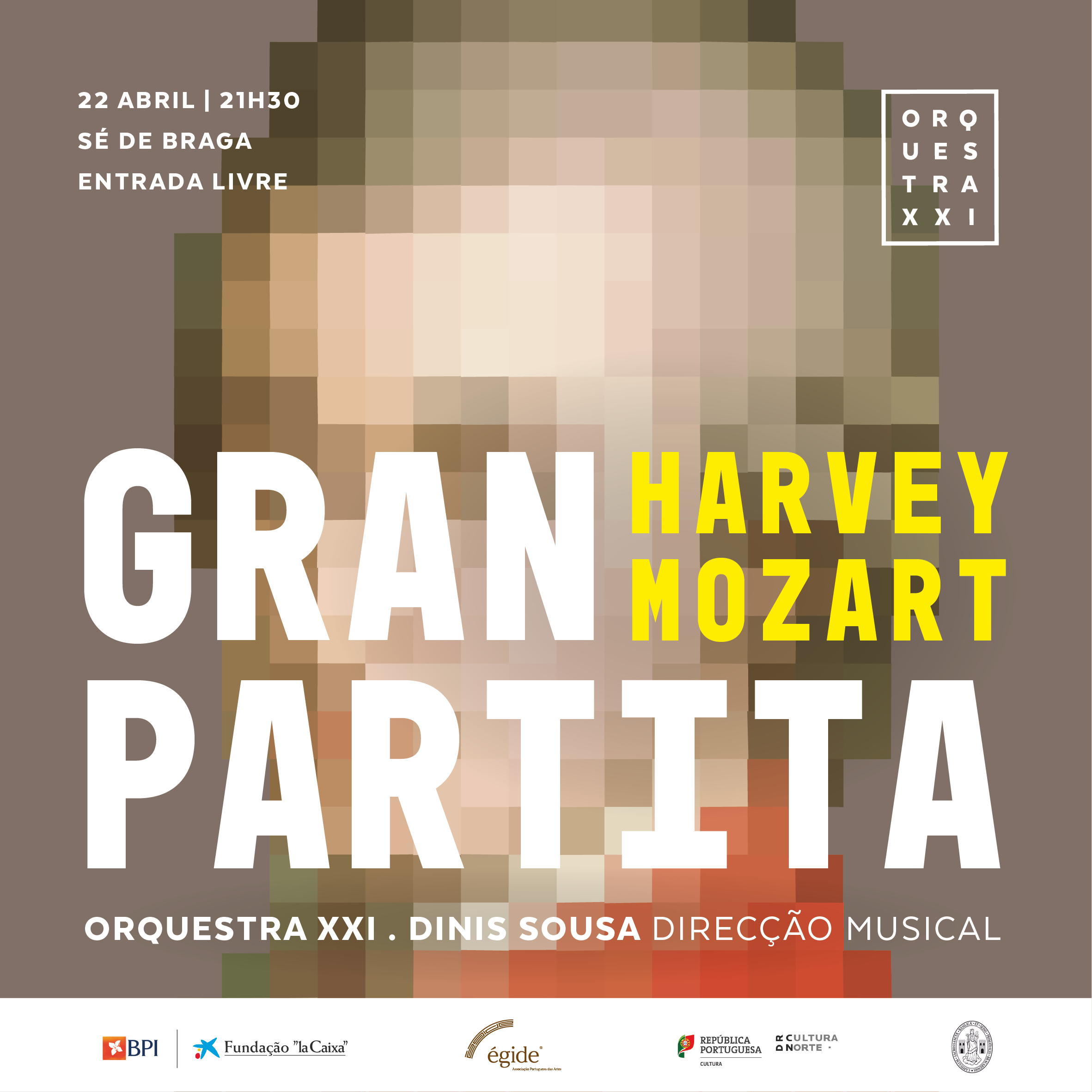 A Orquestra XXI apresentará as obras de Jonathan Harvey - Serenade in homage to Mozart e W. A. Mozart - Serenata no. 10, K. 361 “Gran Partita”, sob direção musical Dinis Sousa.