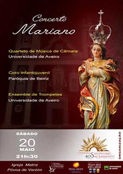 A Confraria do Santíssimo Sacramento da Paróquia de Nossa Senhora da Conceição (Matriz) - Póvoa de Varzim promove o “Concerto Mariano”, a decorrer no próximo dia 20 de maio, às 21h30, na Igreja Matriz da Póvoa de Varzim.