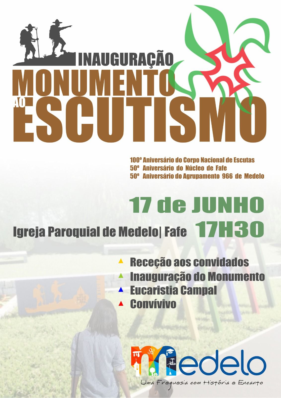 A inauguração decorre este sábado, 17 de junho, a partir das 17h30 na Igreja Paroquial de Medelo-Fafe. Além da inauguração do Monumento ao Escutismo a tarde conta com a celebração da Eucaristia e um convívio.