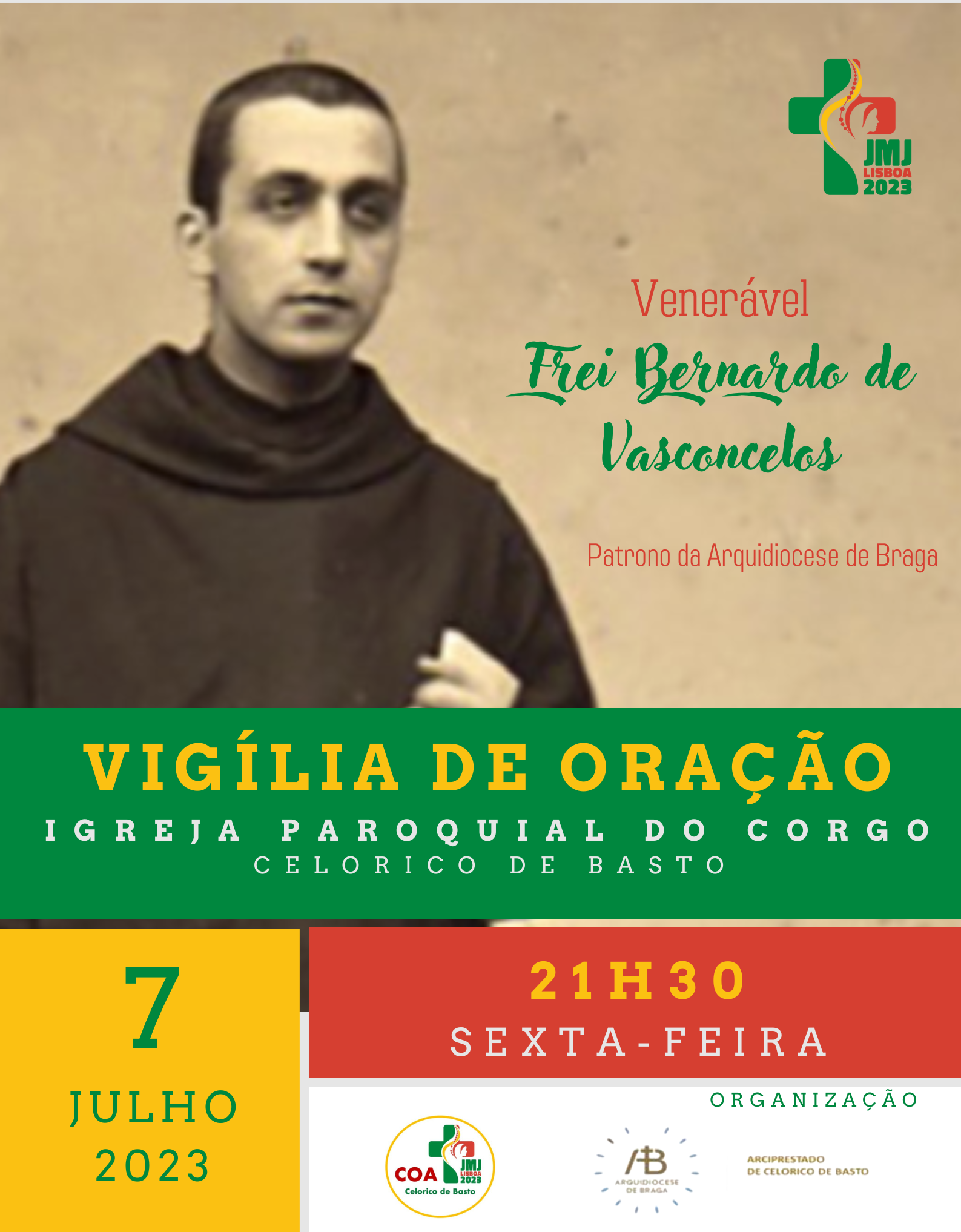 A Pastoral de Jovens e o COA de Celorico de Basto promovem na próxima sexta-feira, 7 de julho, uma Vigília de Oração a partir das 21h30, na Igreja Paroquial do Corgo onde está sepultado o patrono da Arquidiocese de Braga para a Jornada Mundial da Juventude (JMJ) Lisboa 2023, o Venerável Frei Bernardo de Vasconcelos.
