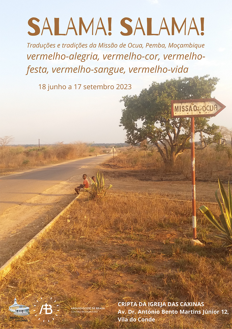 A exposição “Salama! Salama!” - Traduções e tradições da Missão de Ocua, Pemba, Moçambique, em vermelho-alegria, vermelho-cor, vermelho-festa, vermelho-sangue, vermelho-vida - poderá ser visitada nos meses de julho e agosto, na Paróquia de Nosso Senhor dos Navegantes das Caxinas, Arciprestado de Vila do Conde/Póvoa de Varzim