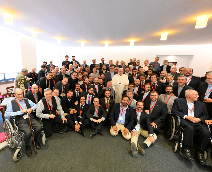 Em seguida, fez uma breve apresentação da Província. "Historicamente – disse – somos uma Província antiga, fomos expulsos de Portugal três vezes e regressámos outras tantas. Dizem que a erva daninha é difícil de eliminar, pois bem, nós ainda cá estamos… Talvez por causa destas expulsões, por sermos uma Província sem dinheiro, mas também por causa do nosso carácter missionário historicamente forte, parece-me que duas características em particular fazem parte da identidade da Província: em primeiro lugar a criatividade, talvez porque tivemos de nos adaptar tantas vezes. E, em segundo lugar, a proximidade.As nossas obras são informais, pequenas, mas sempre próximas das pessoas. Penso que esta proximidade é uma característica do nosso trabalho pastoral, e consideramos isso uma grande graça. Somos pouco mais de 130 companheiros. Há 18 que ainda não foram ordenados e outros tantos que ainda não fizeram os seus últimos votos. Há quase 40 em formação. No contexto europeu, podemos dar graças a Deus, estamos-lhe verdadeiramente gratos".