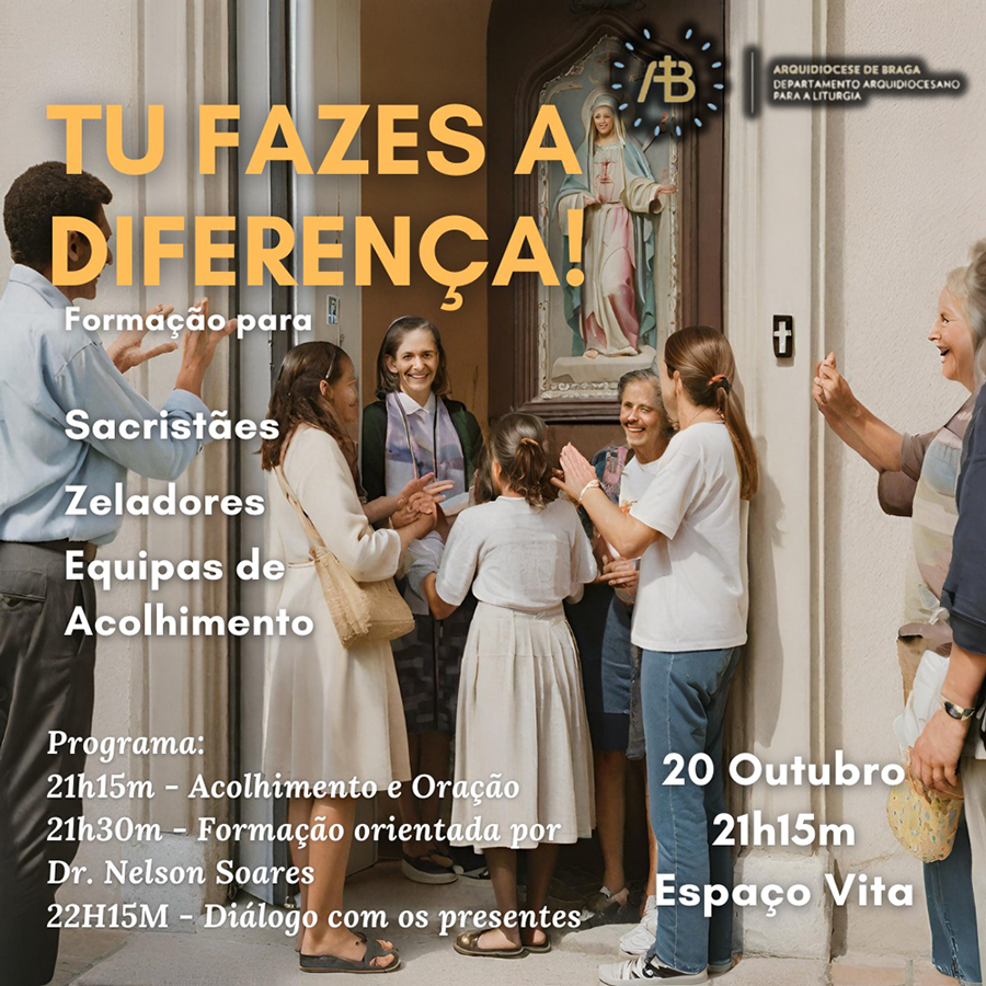 É a partir deste pressuposto que o Serviço de Ministérios Litúrgicos do Departamento Arquidiocesano para a Liturgia de Braga propõe uma formação sobre o acolhimento, a partir do Marketing, para as pessoas que têm a missão de cuidar da Igreja, quer das pessoas que a constituem, quer do seu património: zeladores, sacristães e equipas de acolhimento. Esta formação acontecerá no próximo dia 20 de outubro, às 21h15, no Auditório Vita, em Braga.