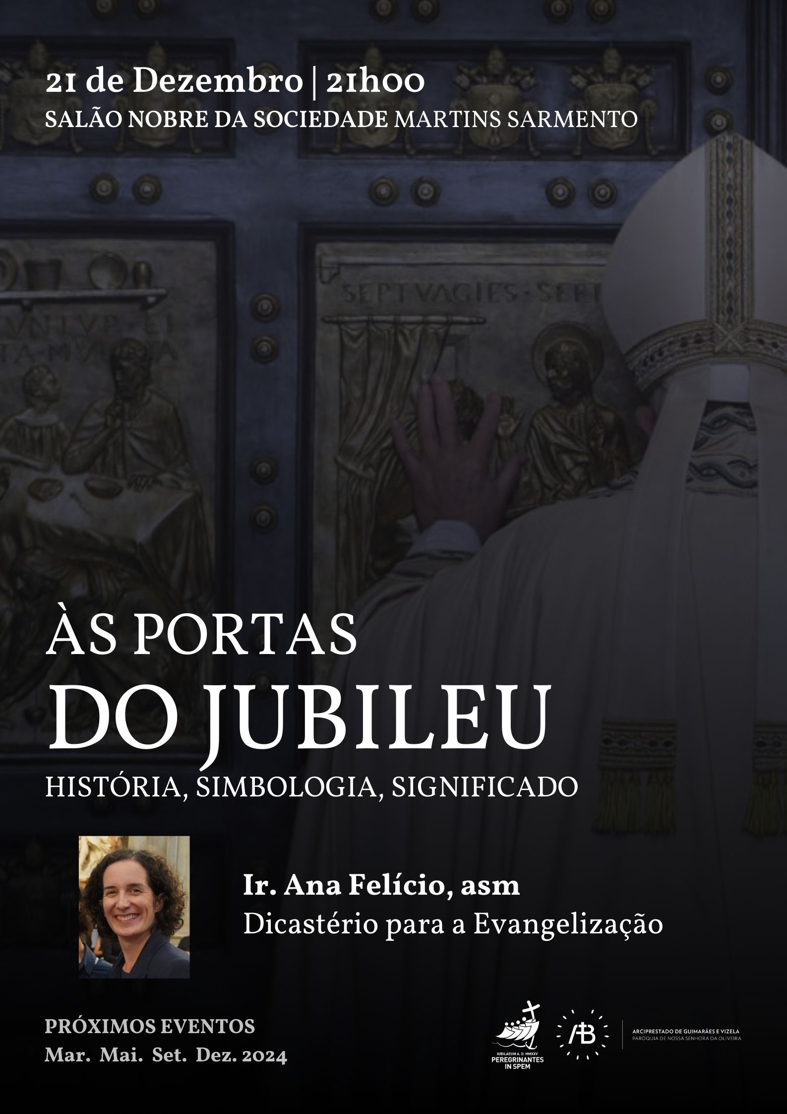 “Às portas do Jubileu - História, simbologia e significado” é o nome do encontro promovido pela Paróquia de Nossa Senhora da Oliveira, que acontece no próximo dia 21 de dezembro, às 21h, no salão Nobre da Sociedade Martins Sarmento, em Guimarães.