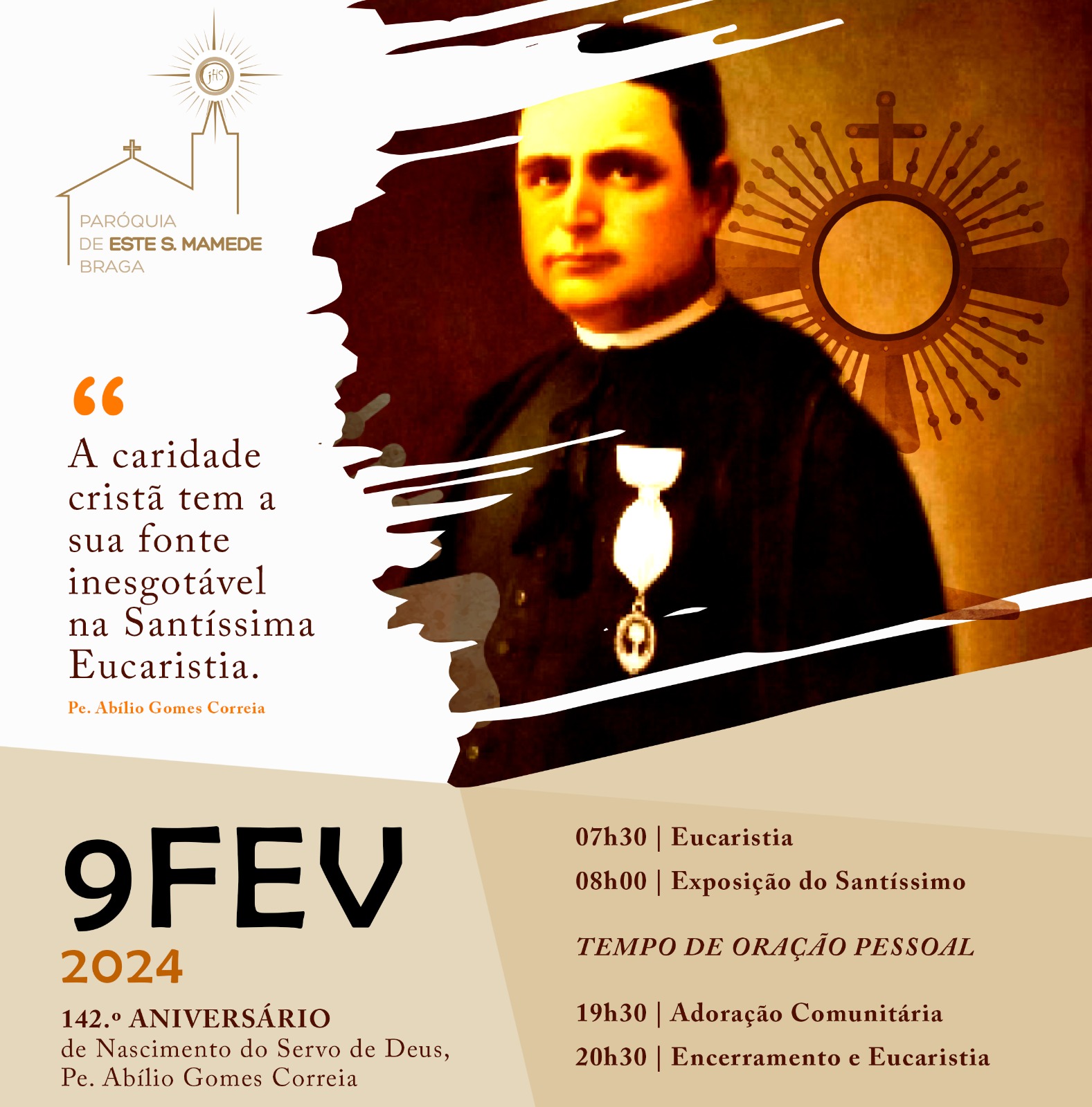 A paróquia de Este S. Mamede evoca, esta sexta-feira, o Apóstolo da Eucaristia por ocasião do 142º aniversário do seu nascimento.