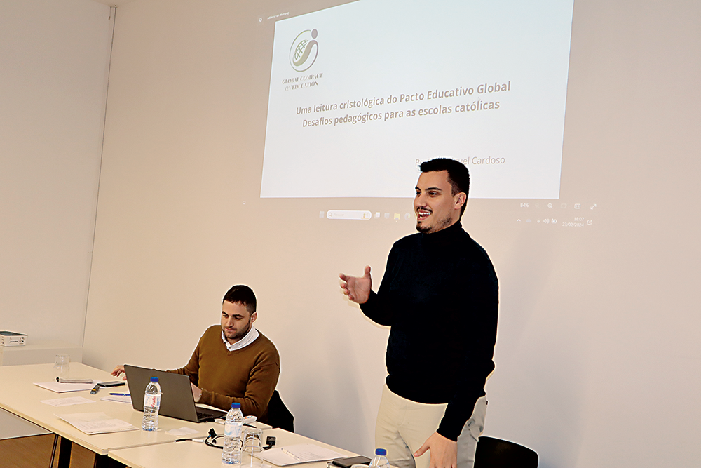 O encontro teve como tema “Uma Leitura Cristológica do Pacto Educativo Global, com os desafios pedagógicos para as escolas Católicas neste tempo que vivemos”. E foi desenvolvido pelo padre José Miguel Cardoso, que trabalha no Dicastério para a Cultura e Educação, no Vaticano.