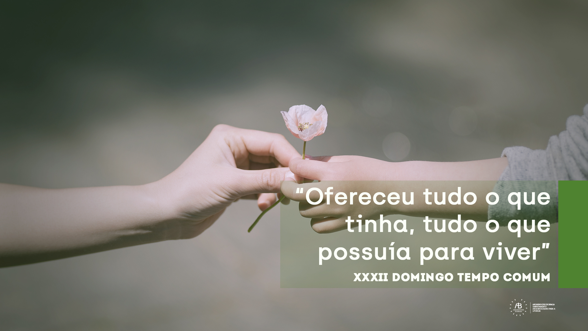 A Eucaristia é a concretização sacramental do que Paulo diz aos coríntios: “Jesus Cristo, sendo rico, fez-se pobre por nosso amor, para que, por meio de sua pobreza, nos tornássemos ricos”. Ele deu a vida para que nós tenhamos vida, e vida em abundância. Por isso, Jesus se comove tanto com o exemplo da pobre viúva. Ela, na sua pobreza, deu tudo o que tinha para viver. Os ricos davam muito, mas, por muito que fosse, davam do que lhes sobrava. Os dons eram destinados às obras grandiosas do Templo de Jerusalém. Todavia, a Igreja que Jesus quer edificar não se constrói sobre pedras dispendiosas, mas sobre o dom generoso do nada que somos e que Deus associa ao dom preciosíssimo de seu Filho no altar da Cruz.