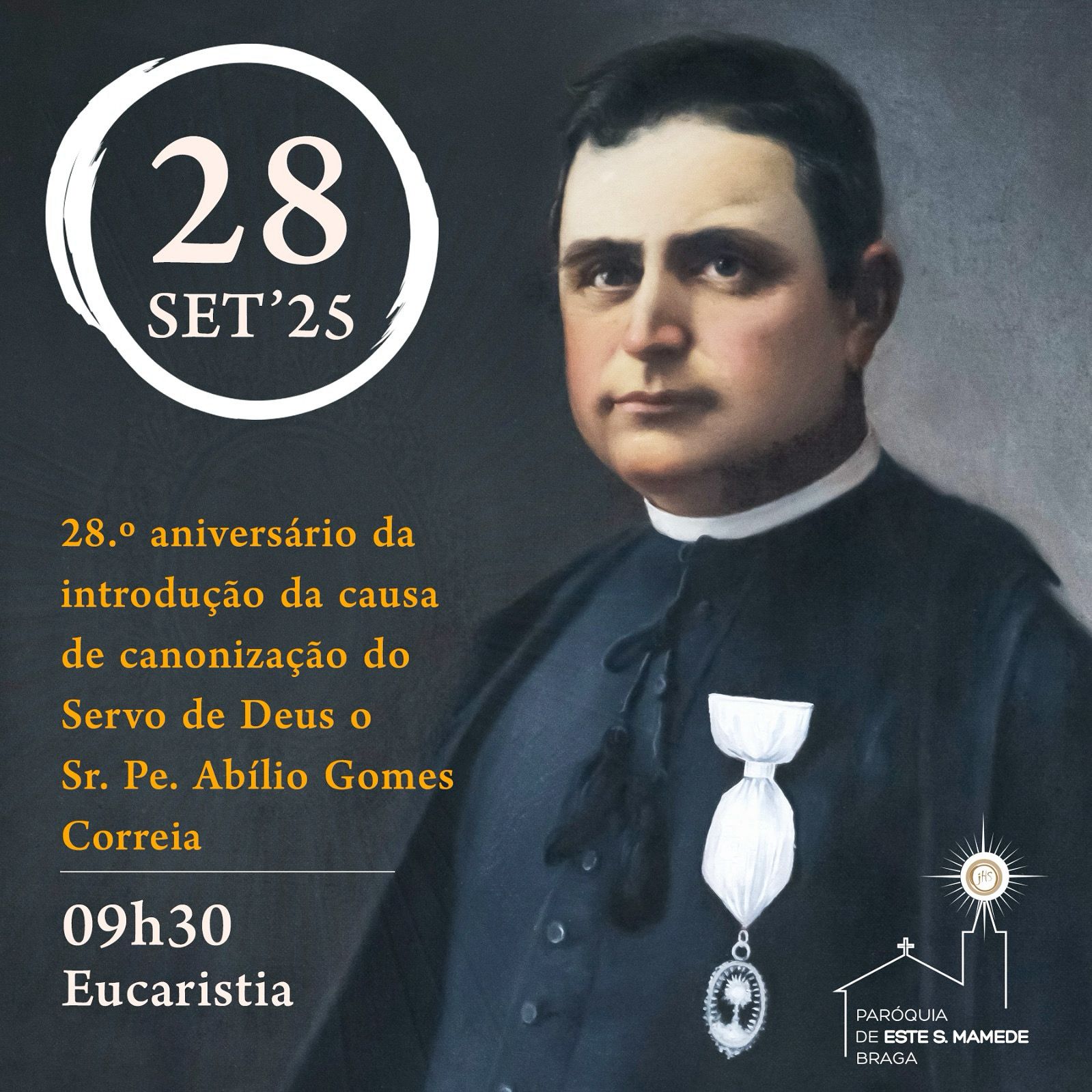 Por ocasião do 28º aniversário da Introdução da Causa de Canonização do Servo de Deus Padre Abílio Gomes Correia, a comunidade de São Mamede de Este evocará este grande e incansável Apóstolo do Santíssimo Sacramento, no dia 28 de setembro, com a celebração da eucaristia às 9h30.