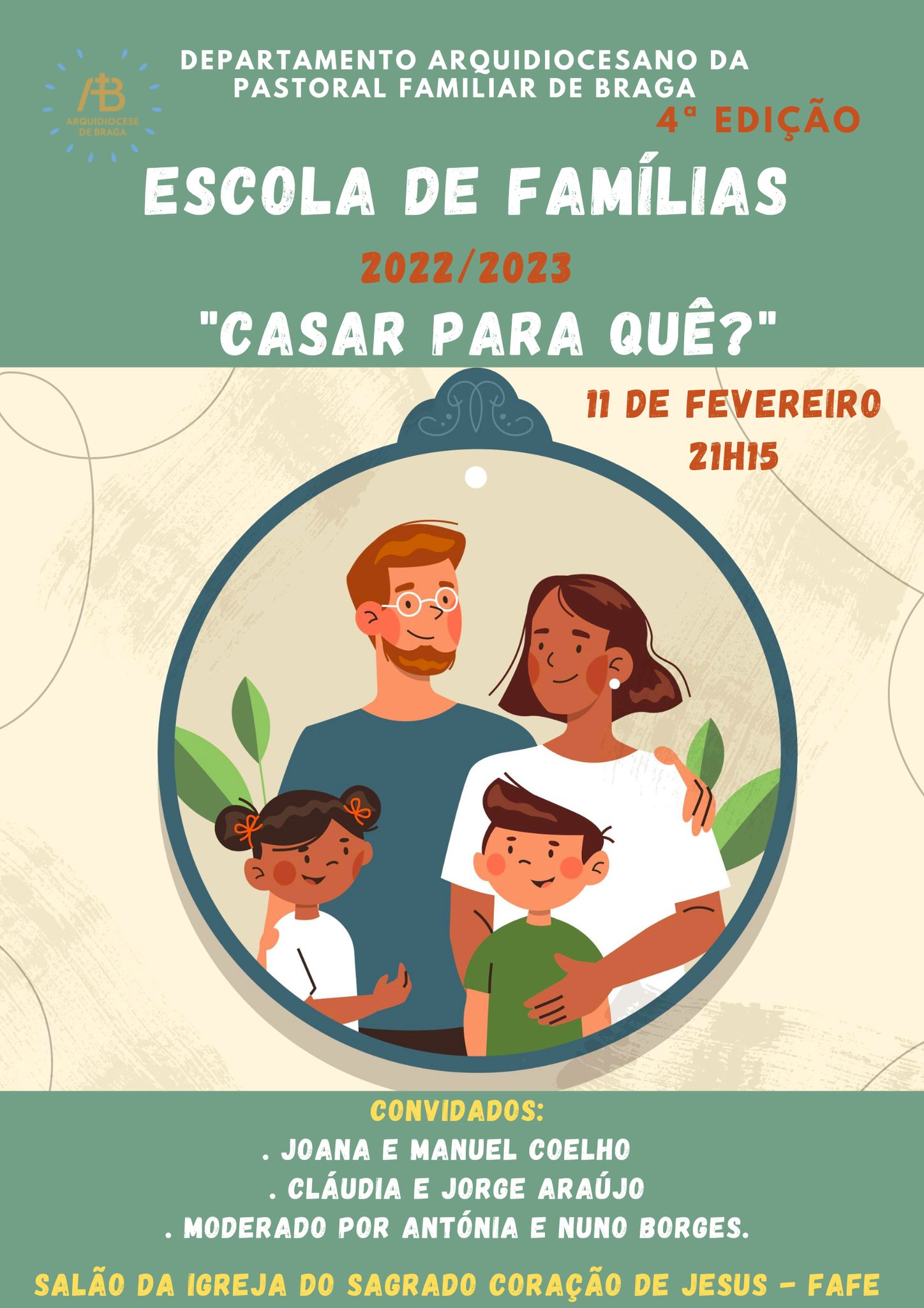 Desta vez a Escola de Famílias, será no Arciprestado de Fafe, na Igreja do Sagrado Coração de Jesus, às 21,15 horas do dia 11 de fevereiro.