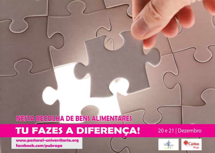 A Pastoral Universitária de Braga vai dinamizar uma campanha de angariação de alimentos a favor da Cáritas Arquidiocesana de Braga, intitulada "Este Dezembro TU fazes a DIFERENÇA!".