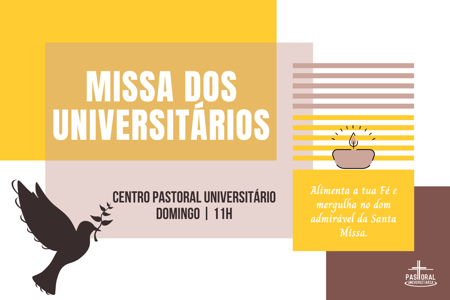 Fruto das novas medidas impostas pelo governo para os dois próximos fins de semana, a Eucaristia Dominical da Pastoral Universitária de Braga, anteriormente celebrada na Igreja dos Terceiros, às 18h30, passará a ser celebrada no Centro Pastoral Universitário, pelas 11h.