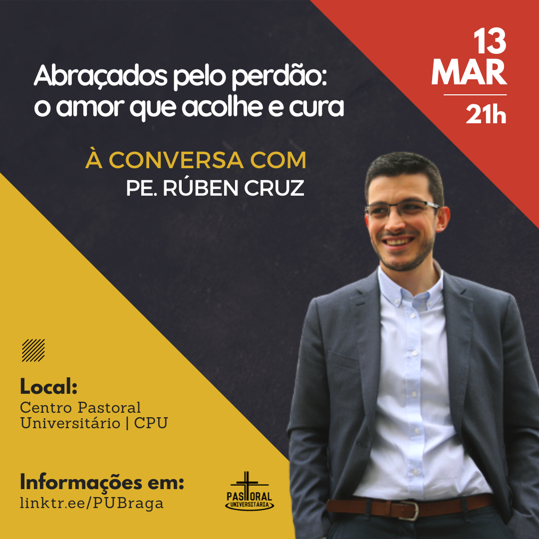 O encontro, alusivo ao tema "Abraçados pelo perdão: o amor que acolhe e cura", acontece no próximo dia 13 de março, pelas 21h, no auditório do Centro Pastoral Universitário (CPU), e é aberto a toda a comunidade académica que procura refletir com maior profundidade sobre a sua caminhada quaresmal.