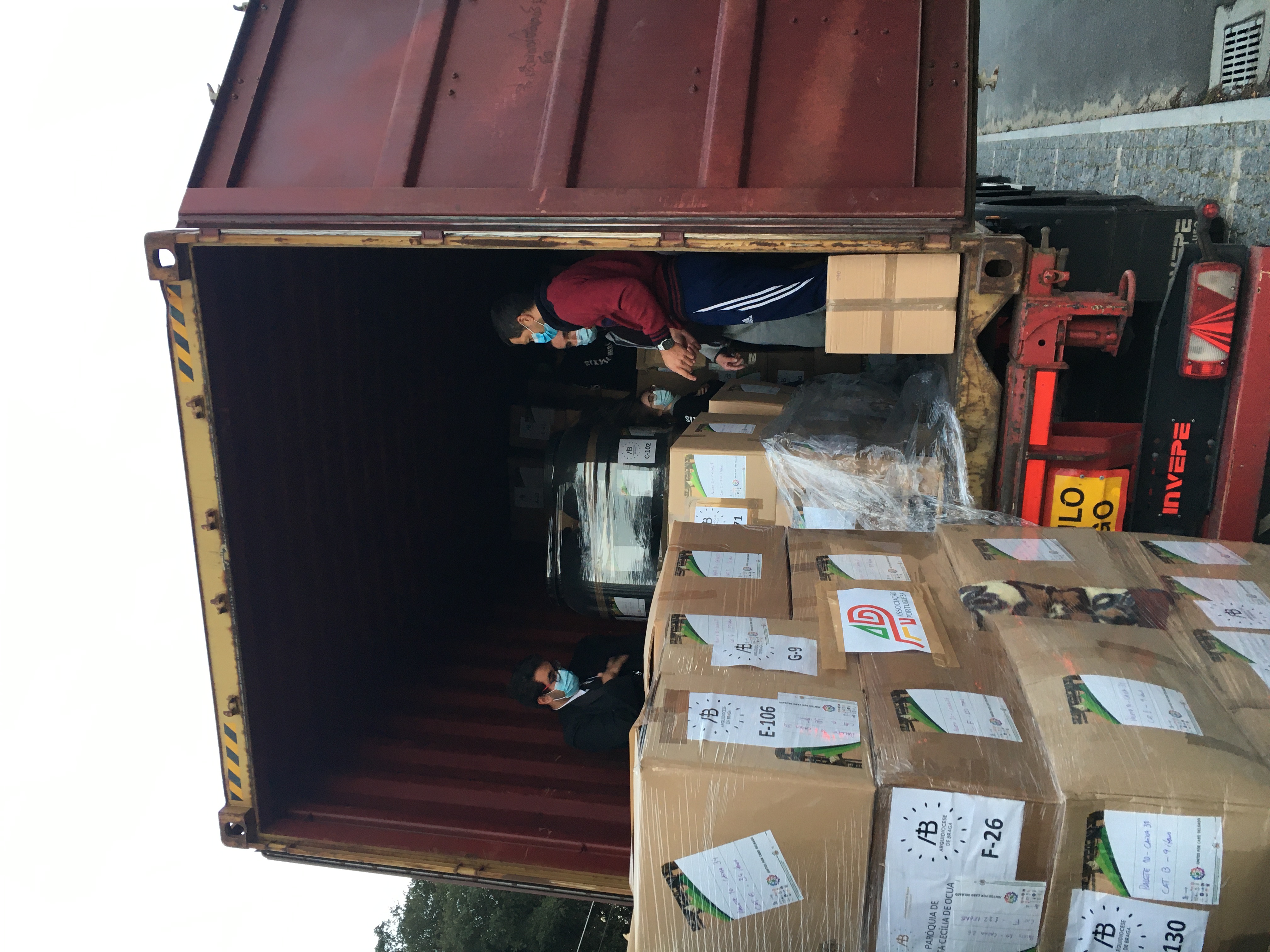 - Todos os voluntários que colaboraram na seleção, embalamento, paletização e carregamento dos bens no contentor, assim como grupos de escuteiros, voluntários internacionais da Sopro, praxe solidária do IPCA.