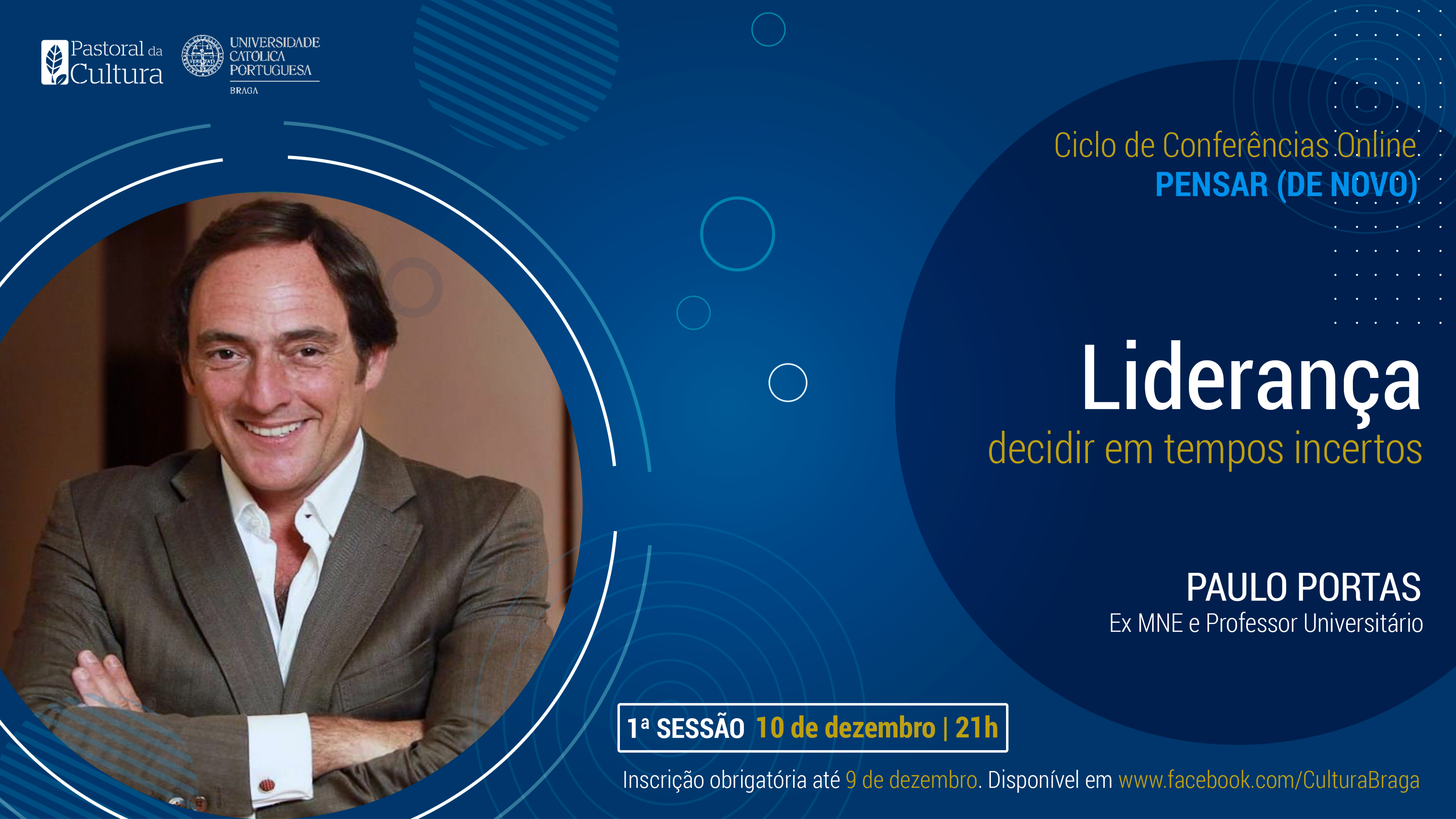 O 1º encontro é já na próxima quinta-feira, dia 10 de dezembro, às 21h, com o ex-MNE e Professor Universitário Dr. Paulo Portas, que refletirá sobre "Liderança: decidir em tempos incertos".
