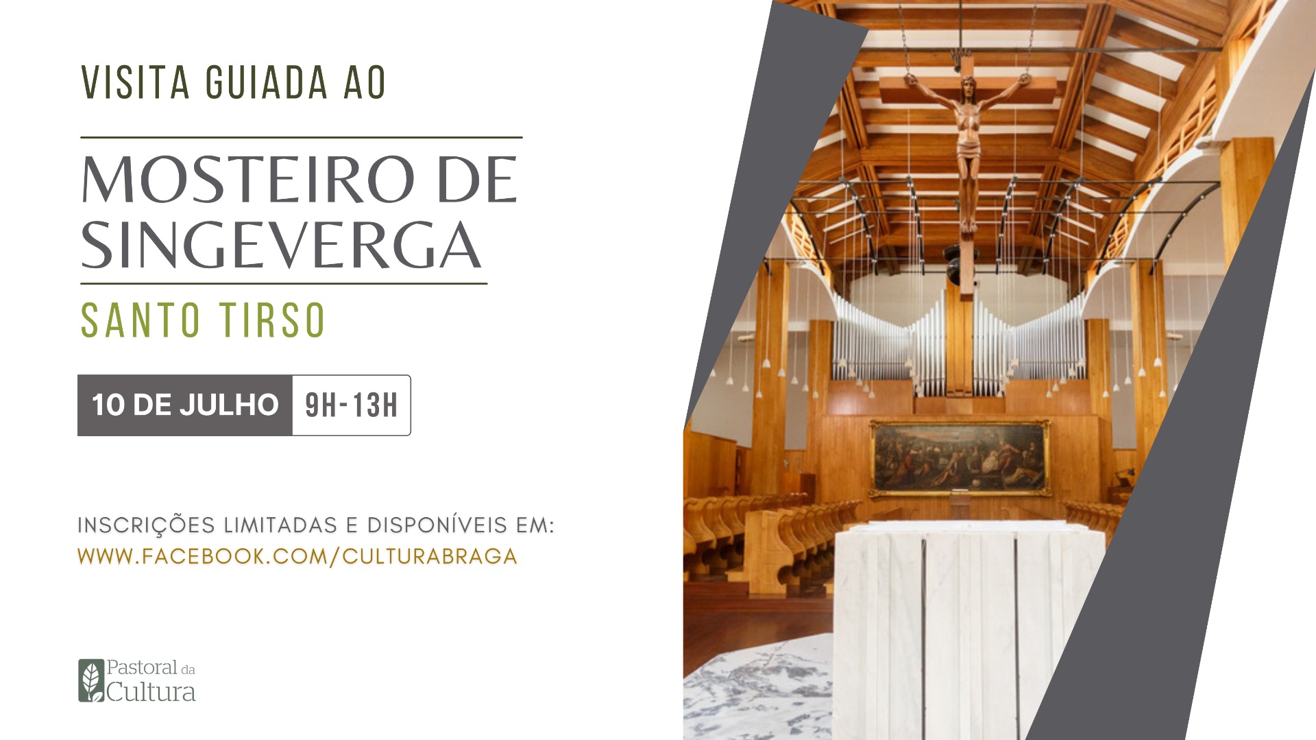 Depois do último ciclo de conferências PENSAR (DE NOVO), que desafiou a comunidade a refletir sobre diferentes temáticas da atualidade com distintos oradores, a Pastoral da Cultura de Braga propõe agora mais uma atividade: uma visita guiada ao Mosteiro de São Bento de Singeverga (Santo Tirso), retomando assim os encontros presenciais iniciais de descoberta da riqueza patrimonial e eclesial do Norte.