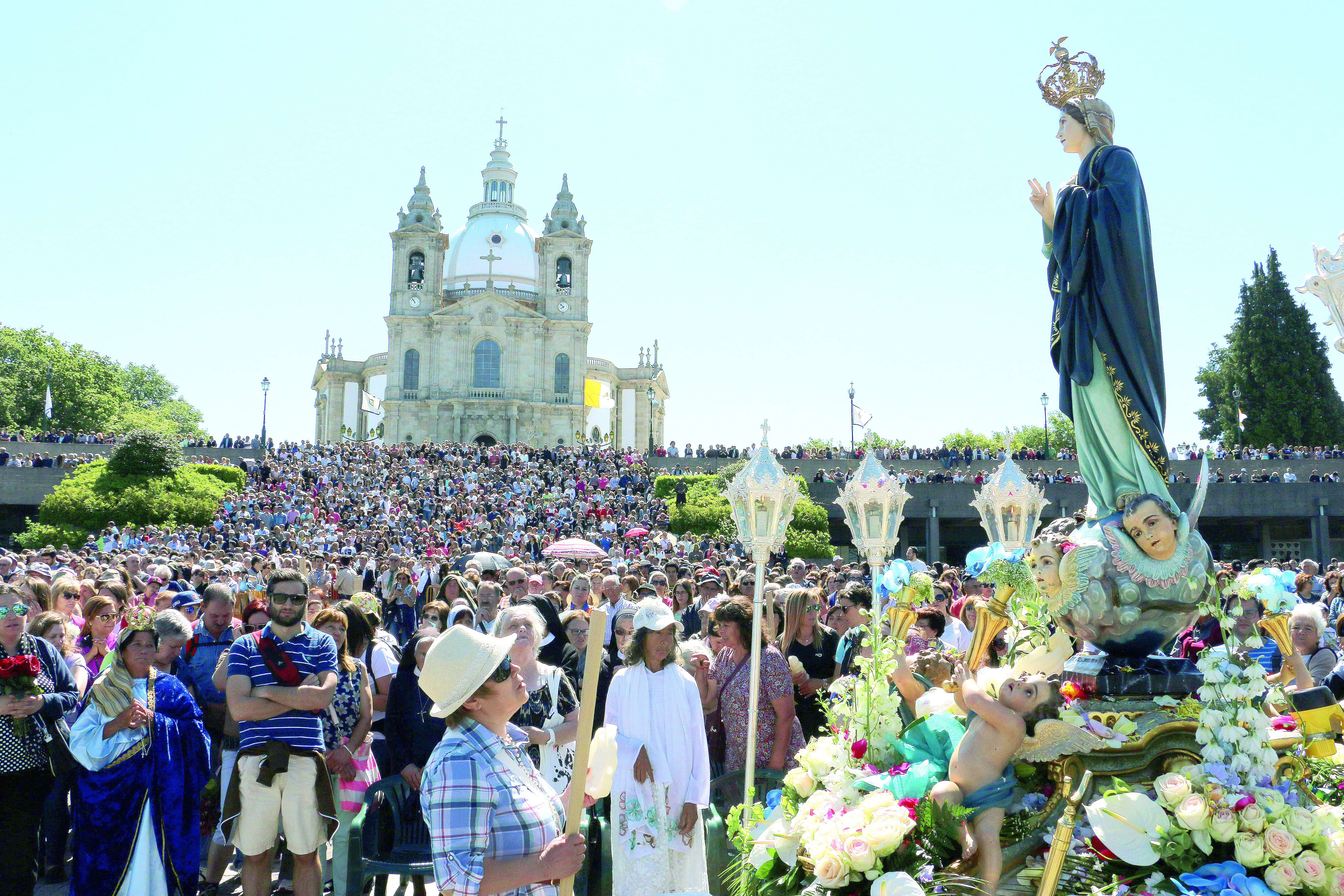 Rogo à Senhora do Sameiro, nesta Peregrinação Arquidiocesana, que faça com que os nossos cristãos se deixem possuir pelo Espírito e que, deixando-se guiar por ele, sejam homens e mulheres firmes na fé, persistentes na esperança, solícitos na caridade, sinceros na humildade, corajosos no sofrimento, serenos na adversidade, solidários na prosperidade, alegres na pobreza e promotores da paz. É bela a coroa de N. Senhora. Nela gostaria de colocar novo pérolas que resplandeçam na vida dos católicos da Arquidiocese de Braga. O Espírito Santo, na riqueza dos seus dons, concedidos para o bem comum, nos envie por todos os caminhos, conscientes de diariamente dar maior brilho a essas pérolas e das colocar também no nosso cartão de identidade cristã. Não esqueçamos e trabalhemos a fé, esperança, caridade, humildade, coragem, serenidade, pobreza, solidariedade, promoção das causas nobres. Com isto Maria estará na nossa vida e nós daremos Maria ao mundo para onde somos enviados.