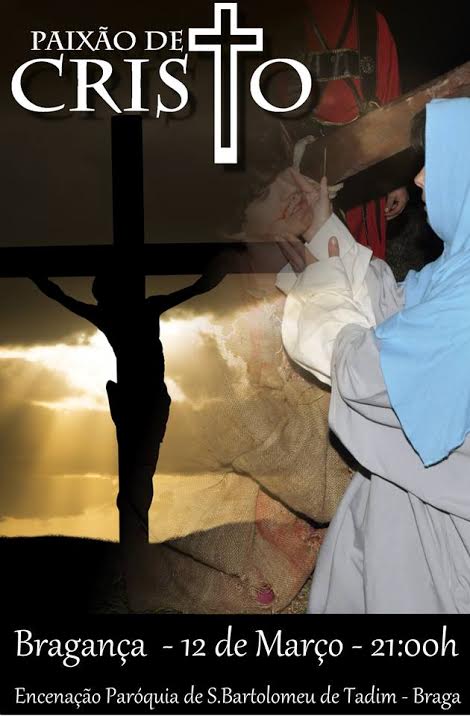 11 março 2016 Notícia A. Bragança e Tadim revivem "Paixão de Cristo" A encenação da "Paixão de Cristo" envolve 160 actores e conta com a participação do coro da paróquia de São Bartolomeu de Tadim.
