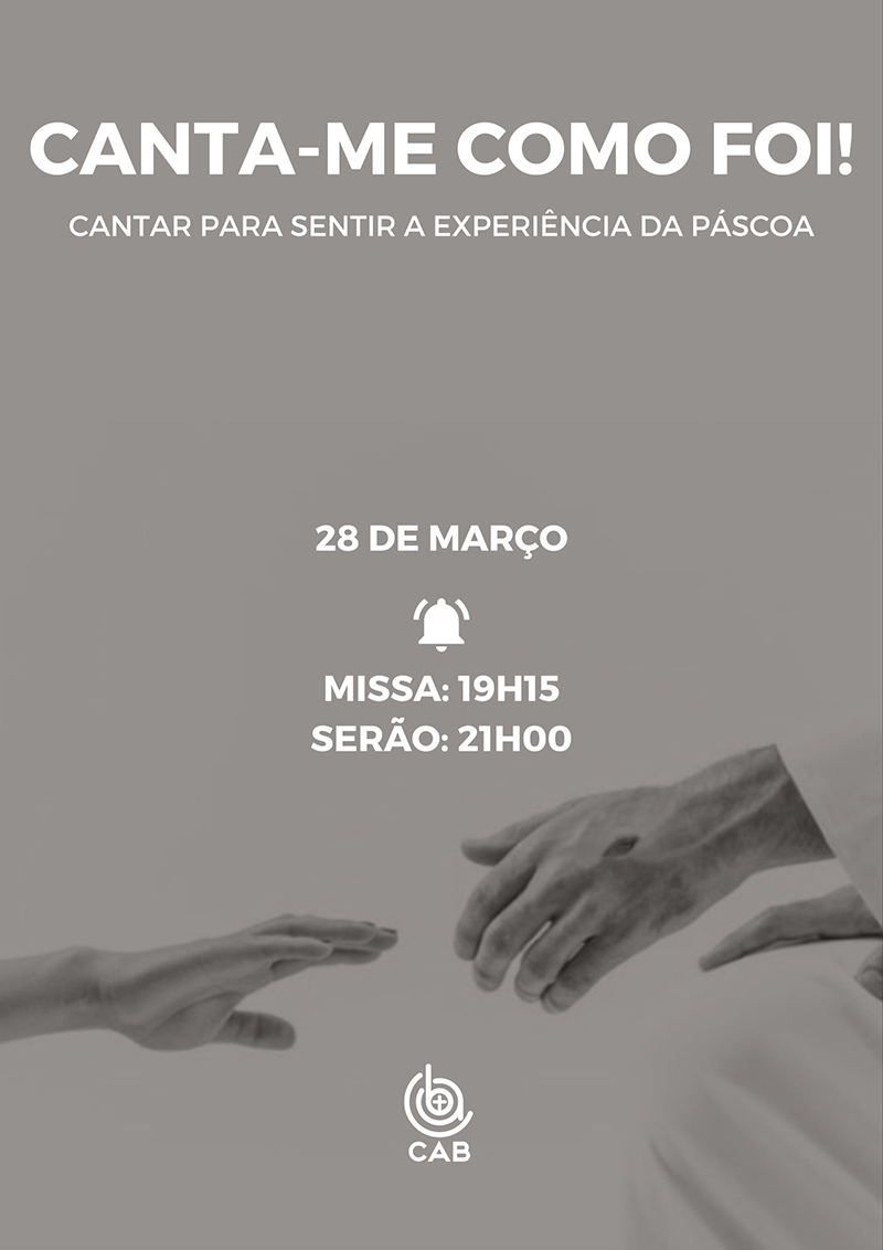DR 22 março 2023 Notícia A. “Canta-me como foi!” Serão promovido pelo CAB quer trazer à comunidade a experiência da Páscoa e acontece na aula magna da Faculdade de Filosofia