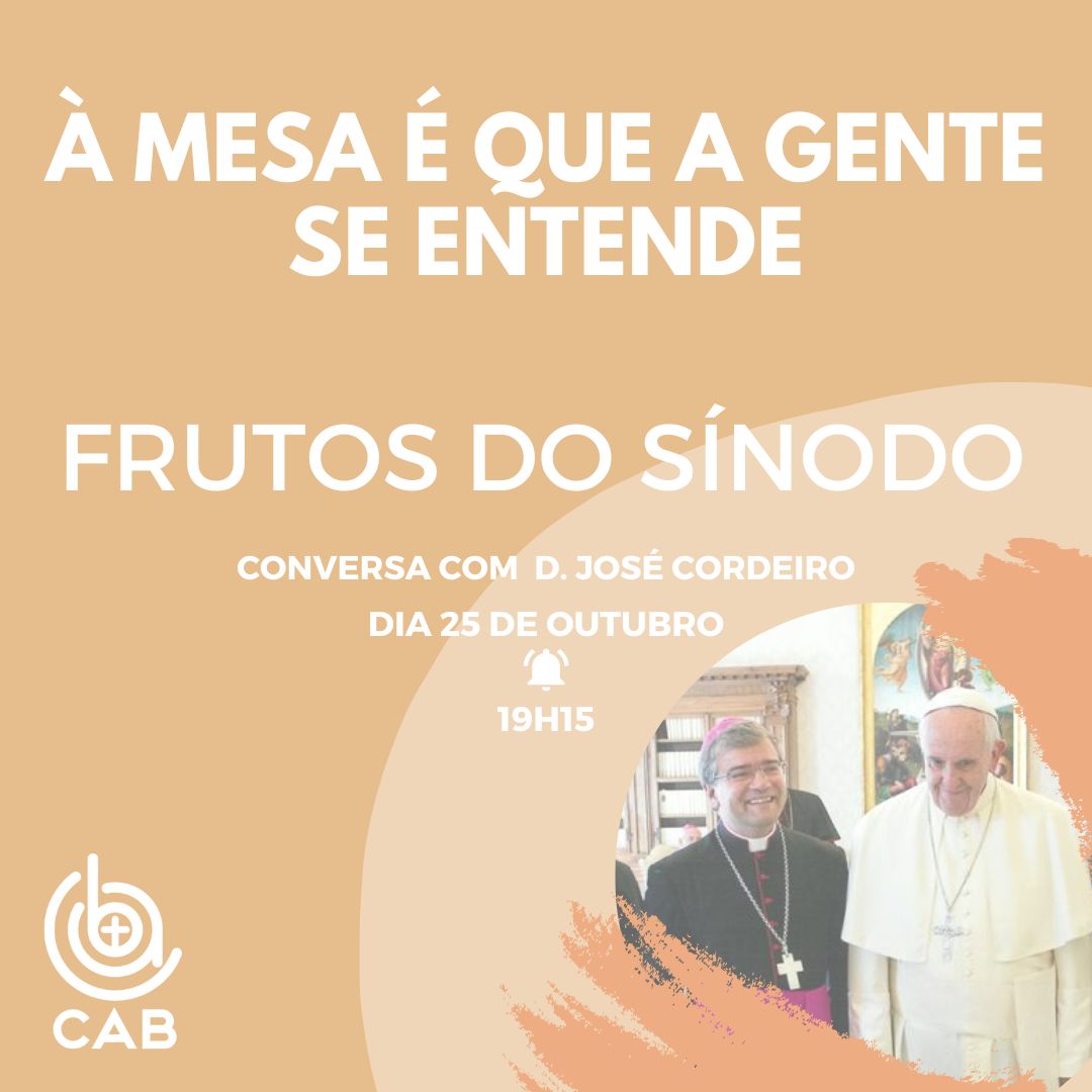 CAB 21 outubro 2022 Notícia A. D. José Cordeiro à conversa no CAB Iniciativa acontece no dia 25 de outubro, às 19h15, no CAB, e consiste numa conversa à mesa com o Arcebispo Metropolita de Braga, D. José Cordeiro.