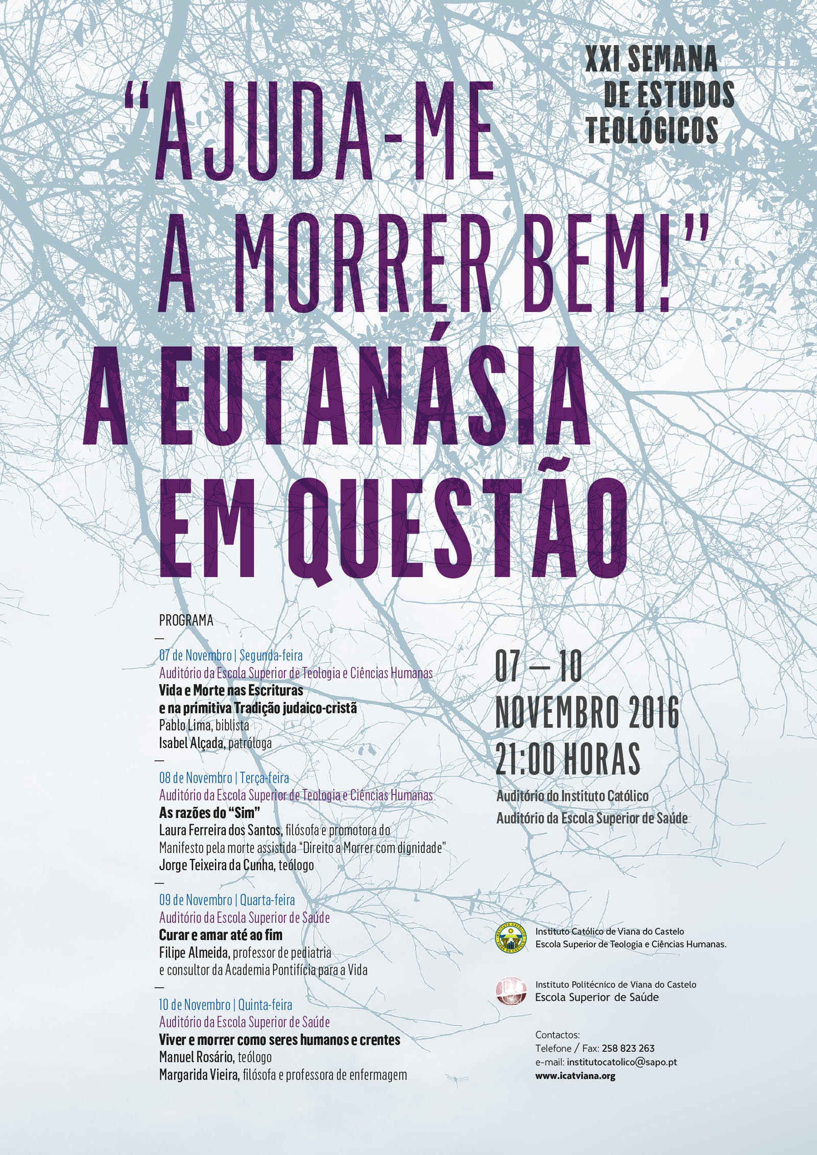 4 novembro 2016 Notícia A. Semana de Estudos Teológicos em Viana Sessões decorrem entre 07 e 10 de Novembro e a abordam a questão da eutanásia.