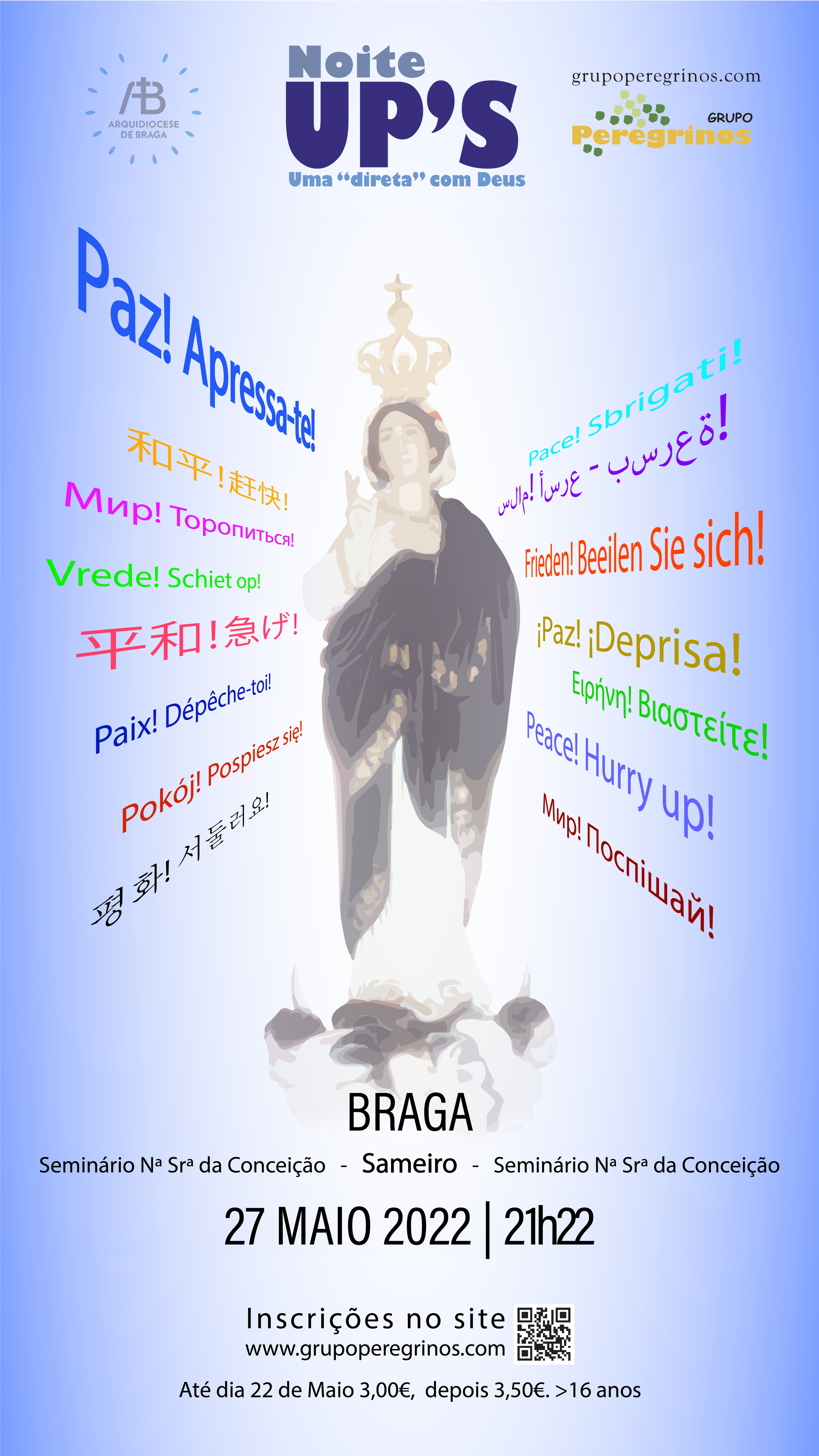A "Noite UP'S" deste ano inica a 18 de Maio, sexta-feira, com a celebração da eucaristia presidida por D. Francisco Senra, — bispo auxiliar de Braga — às 22h30, aqui na Basílica dos Congregados. A vigília de Pentecostes, que vai circular entre cinco igrej