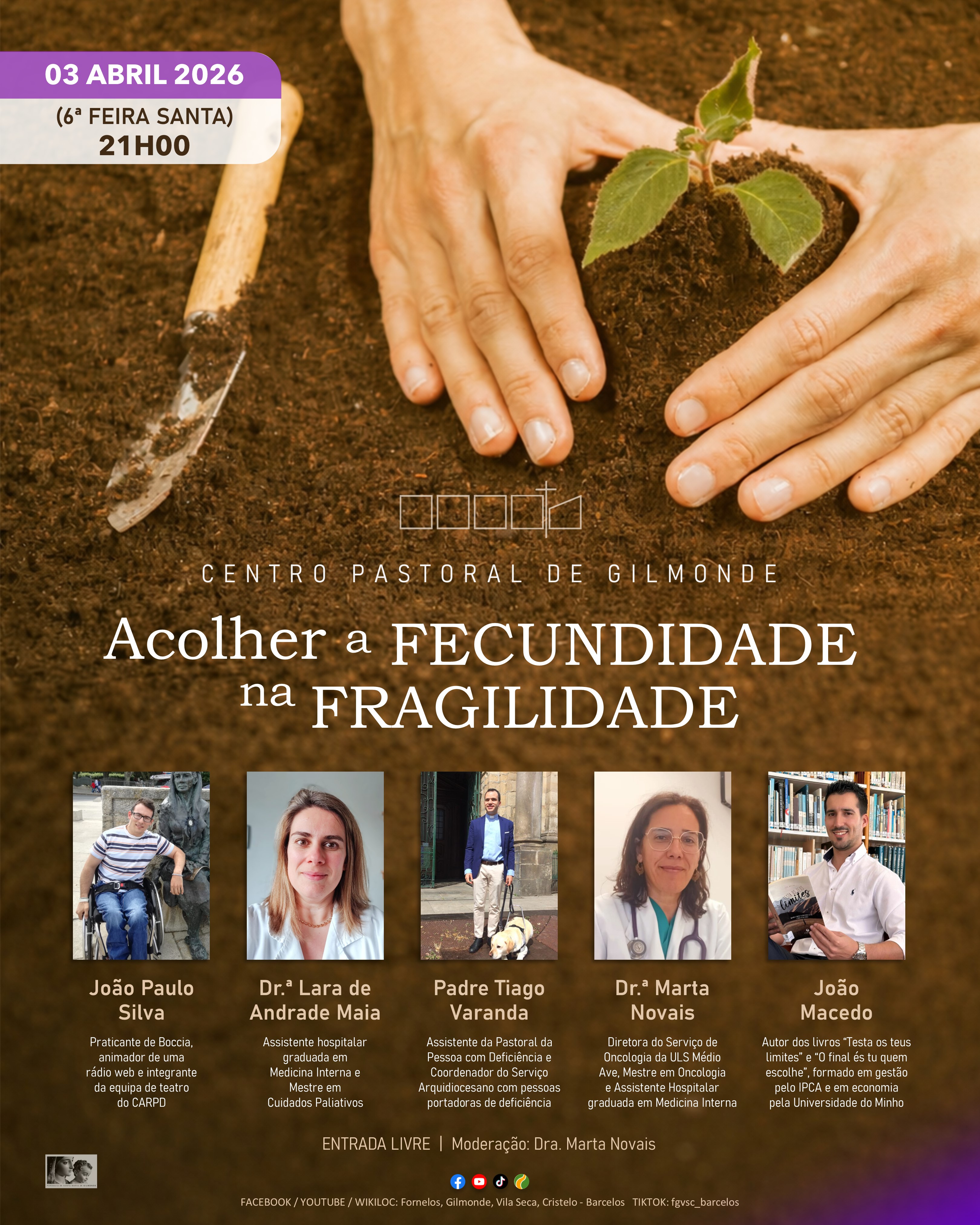 Na Sexta-feira Santa, dia 3 de abril, o Centro Pastoral de Gilmonde, na paróquia de Santa Maria de Gilmonde, Arciprestado de Barcelos, recebe cinco distintos oradores para uma mesa redonda sob o tema “Acolher a Fecundidade na Fragilidade”, inspirado na mensagem apresentada pela Arquidiocese de Braga para o período da Quaresma deste ano.