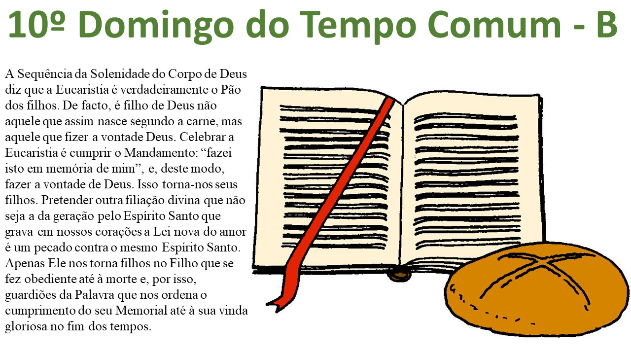 A Sequência da Solenidade do Corpo de Deus diz que a Eucaristia é verdadeiramente o Pão dos filhos. De facto, é filho de Deus não aquele que assim nasce segundo a carne, mas aquele que fizer a vontade Deus. Celebrar a Eucaristia é cumprir o Mandamento: “fazei isto em memória de mim”, e, deste modo, fazer a vontade de Deus. Isso torna-nos seus filhos. Pretender outra filiação divina que não seja a da geração pelo Espírito Santo que grava em nossos corações a Lei nova do amor é um pecado contra o mesmo Espírito Santo. Apenas Ele nos torna filhos no Filho que se fez obediente até à morte e, por isso, guardiões da Palavra que nos ordena o cumprimento do seu Memorial até à sua vinda gloriosa no fim dos tempos.