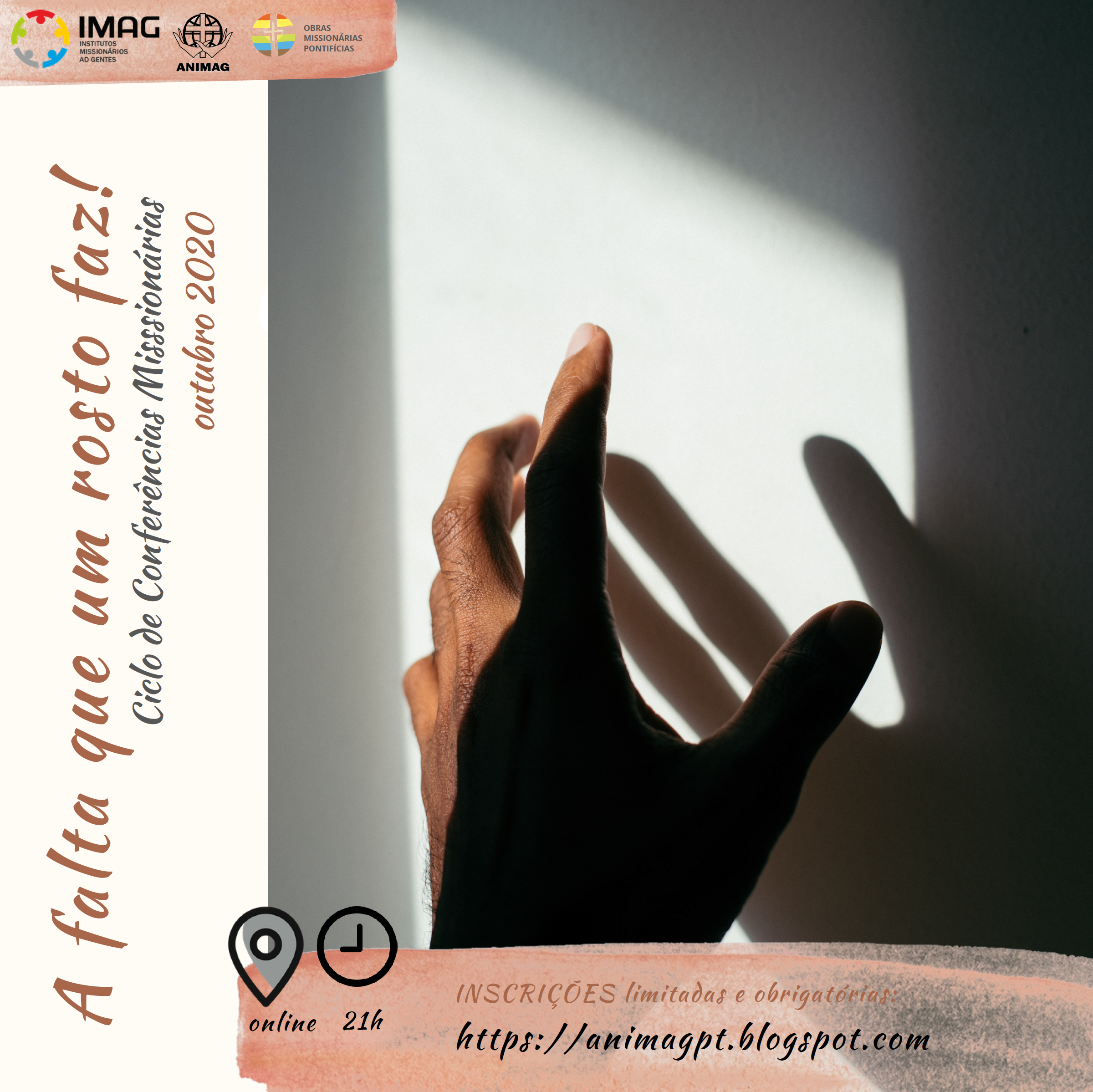 Os Institutos Missionários Adgentes e os ANIMAG (Animadores dos Institutos Missionários Adgentes), em colaboração com as Obras Missionárias Pontifícias, vão organizar durante o mês de Outubro um ciclo de conferências missionárias em formato de videoconferência e dedicado ao tema “A falta que um rosto faz!”