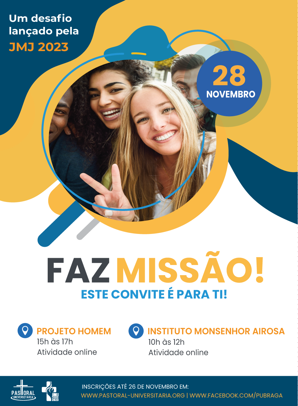 A Pastoral Universitária de Braga aceitou o desafio da Organização da JMJ 2023 e está a convidar a comunidade académica a "Fazer Missão" no próximo dia 28 de Novembro, em duas instituições com quem a Pastoral Universitária se relaciona no serviço voluntário.