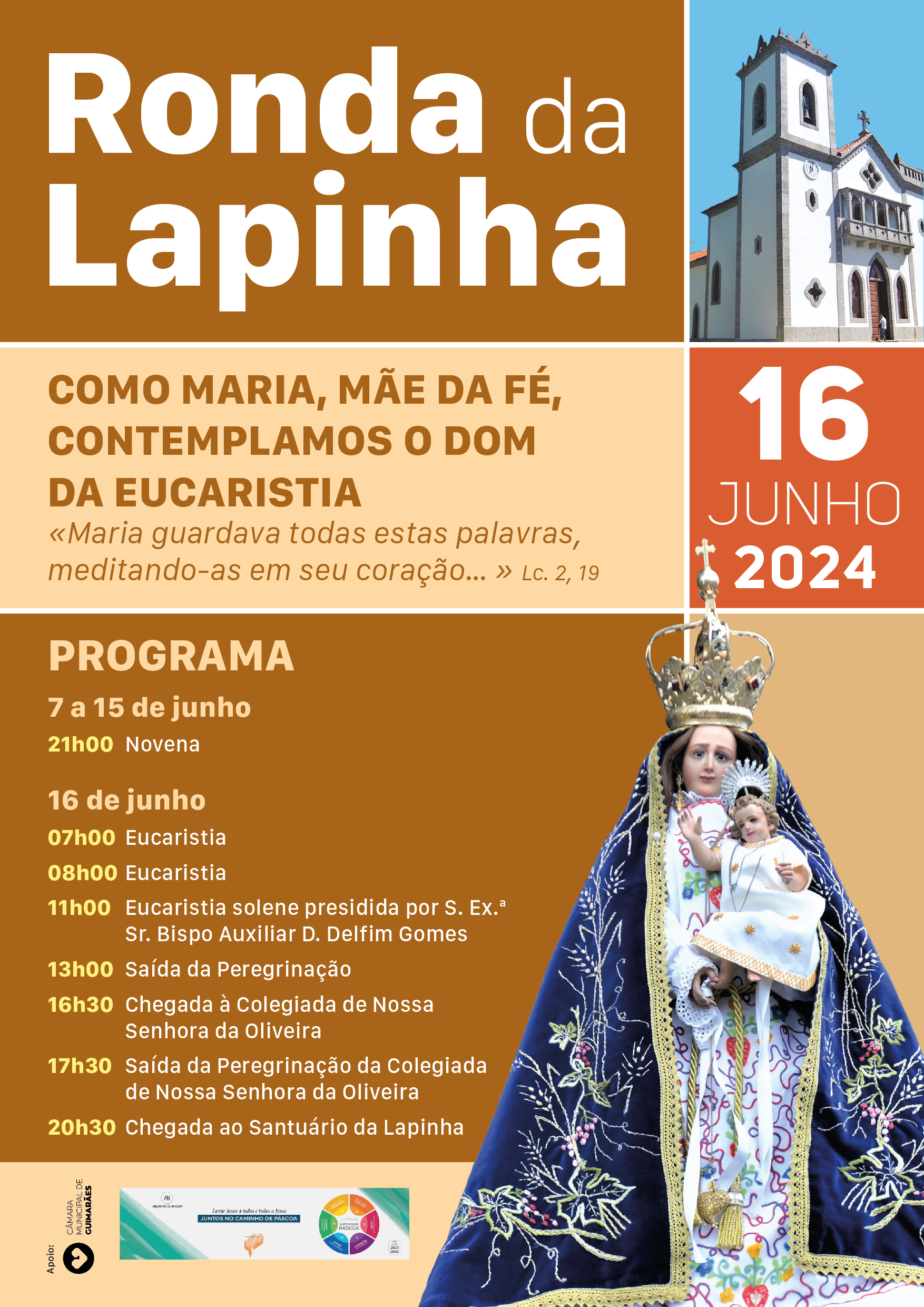 De acordo com a Irmandade de Nossa Senhora da Lapinha, do Arciprestado Guimarães/Vizela, a peregrinação de 2024 tem como tema “Como Maria, Mãe da Fé, contemplamos o Dom da Eucaristia”, no contexto do 5º Congresso Eucarístico.