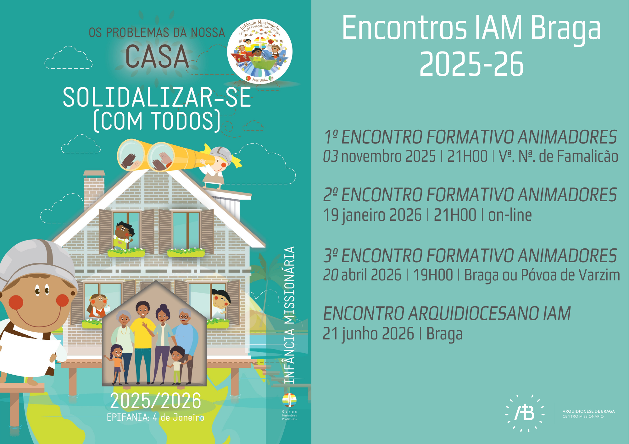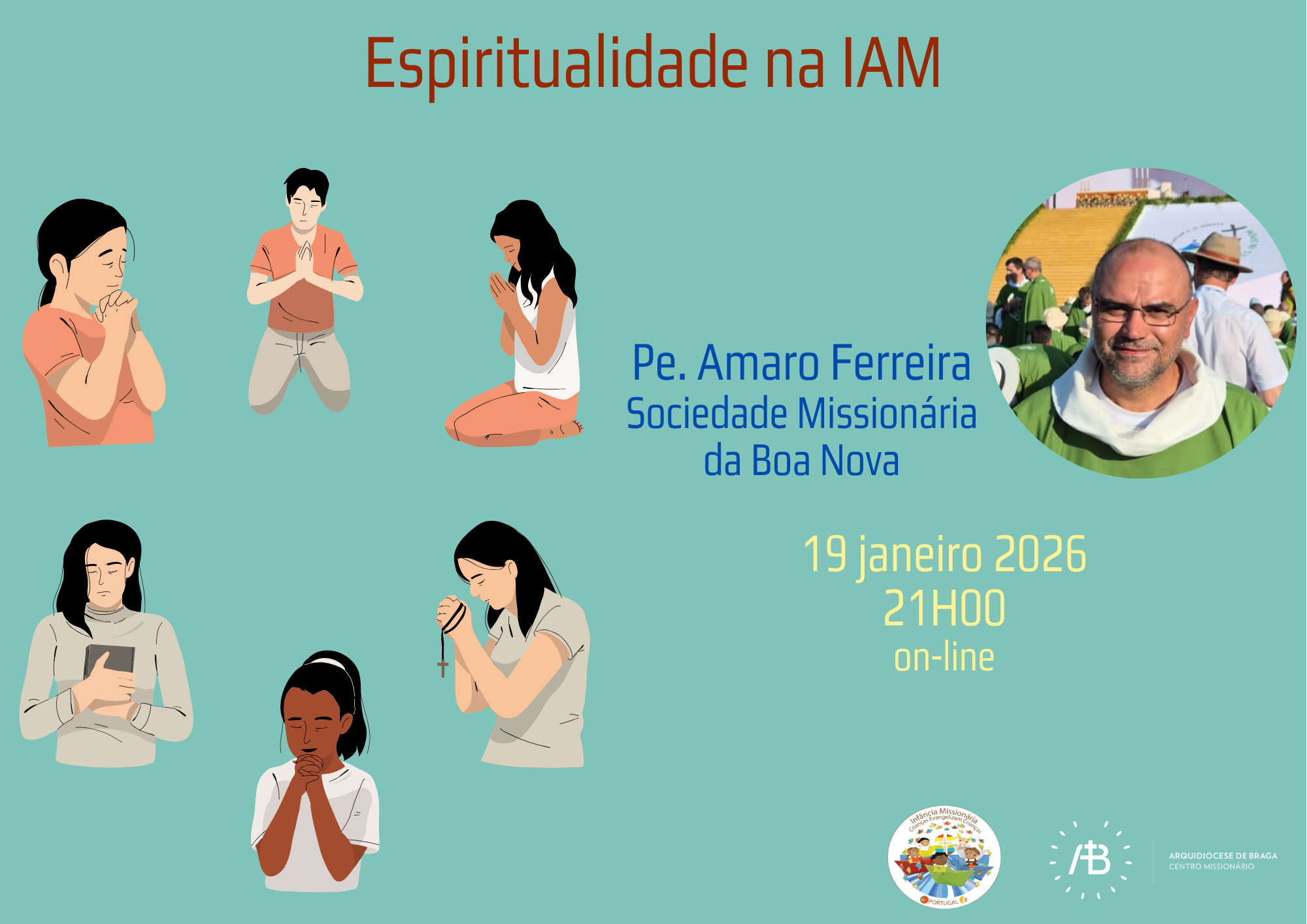 O CMAB - Centro Missionário da Arquidiocese de Braga - convida animadores/as e futuros animadores/as da IAM – Infância e Adolescência Missionária, catequistas e outros animadores de grupos de crianças e adolescentes para participar no encontro formativo de animadores missionários, com o Pe. Amaro Ferreira, da Sociedade Missionária da Boa Nova, com o Tema “Espiritualidade na IAM”. Este encontro será no dia 19 de janeiro 2026, às 21h, on-line.