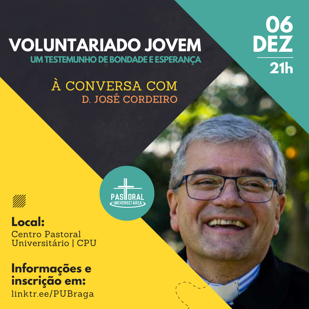 No próximo dia 6 de dezembro, o Centro Pastoral Universitário recebe o Arcebispo de Braga, D. José Cordeiro, para uma conversa sobre o voluntariado jovem e o impacto deste na transformação da pessoa e da sociedade.