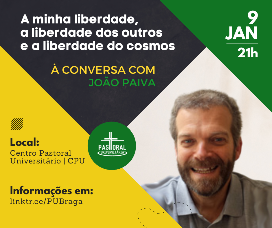 No âmbito dos encontros de formação complementares à vida académica, a Pastoral Universitária de Braga convida os universitários a participar no 2º encontro, no qual contamos com a presença de João Paiva para nos falar sobre o conceito da liberdade individual, coletiva e dos cosmos.